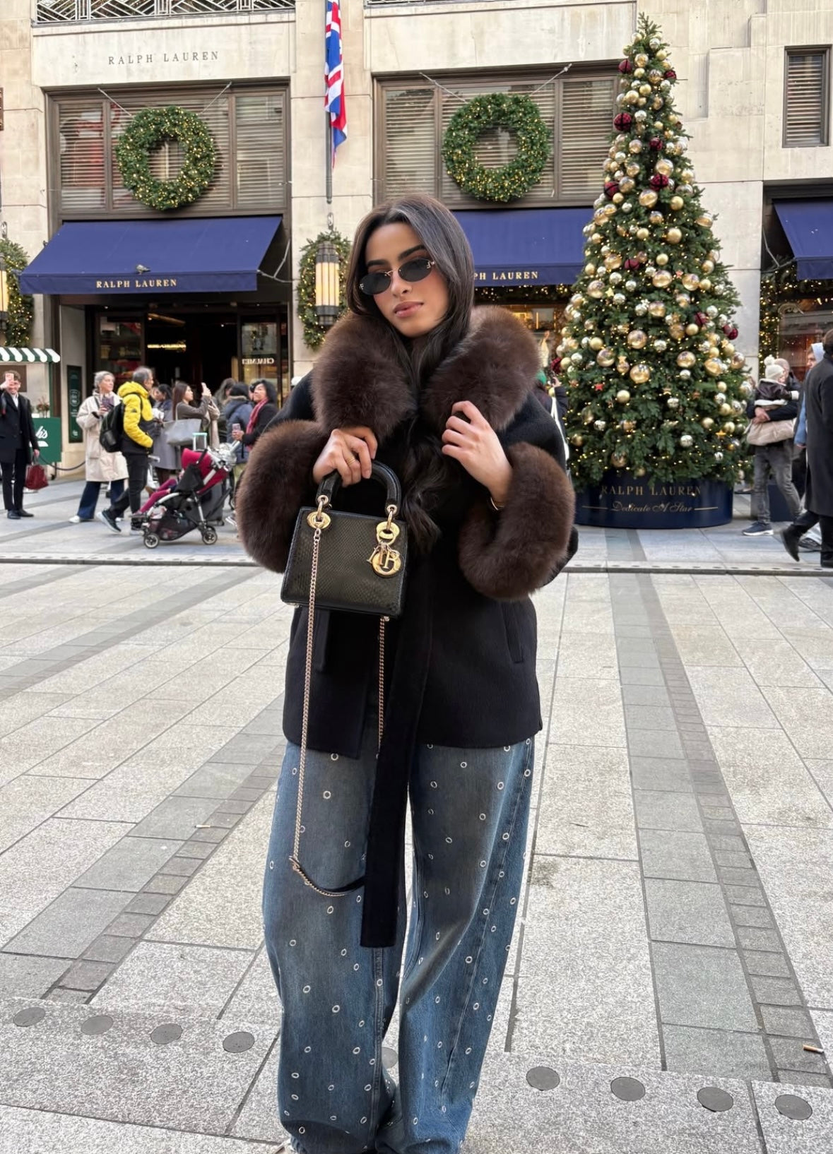 - Trimmed with rich chocolate fox fur